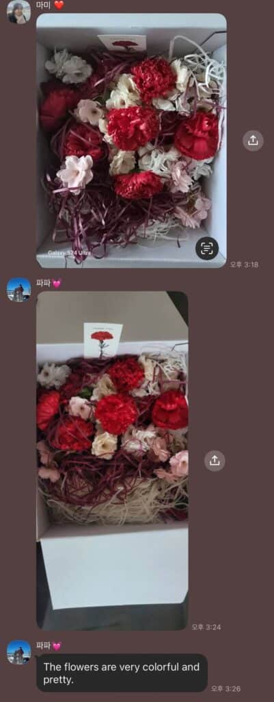 “이렇게 예쁜 꽃이 담긴 박스를 직접 만들었다니, 감동이야!”,