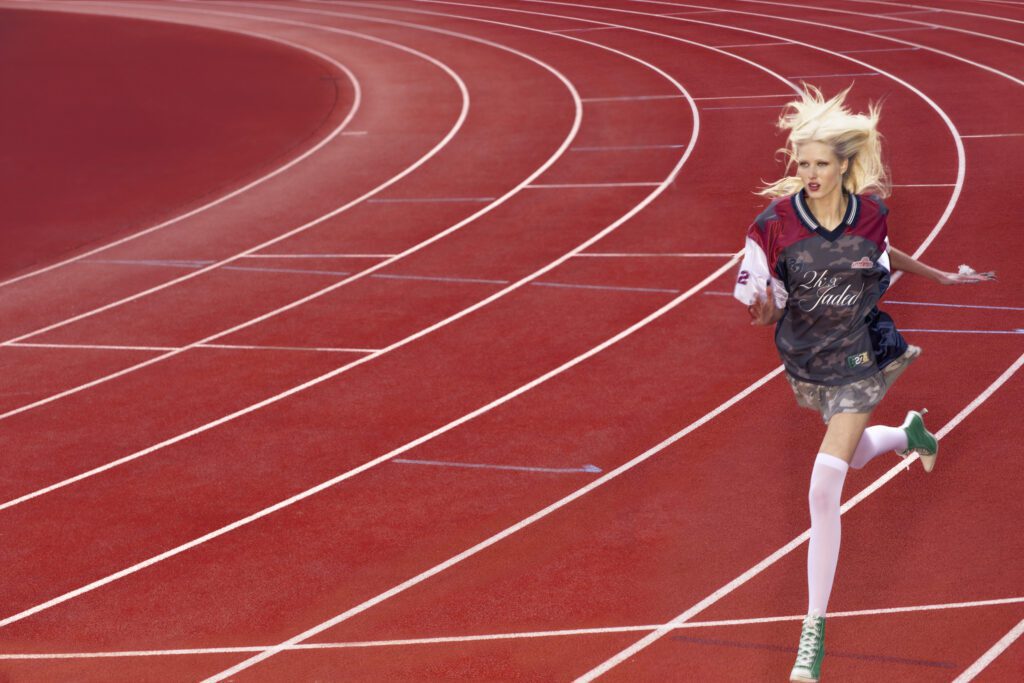 With the collection embedded with sport inspired details and busy graphics, it seamlessly lent itself to a spirited track & field inspired campaign.